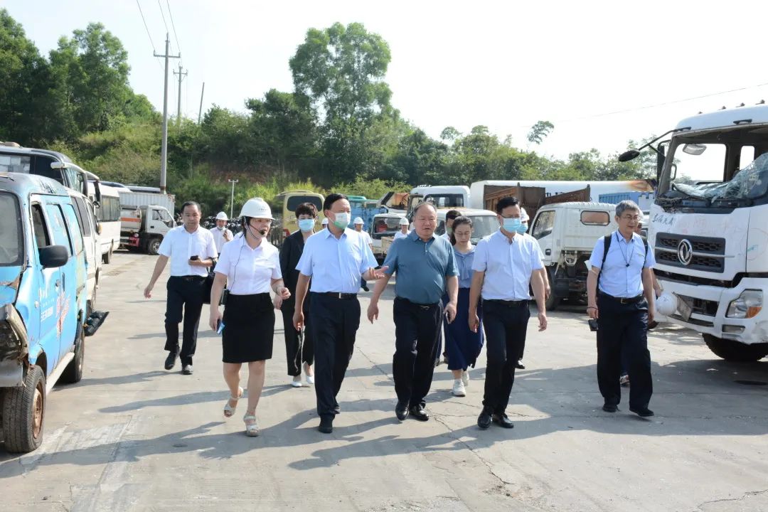在報廢機(jī)動車拆解中心,李碧丹詳細(xì)向郭承站介紹了廠區(qū)布局、“回收-注銷-拆解”作業(yè)流程、治污減排工作以及危險廢物管理等情況。